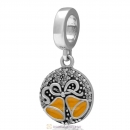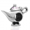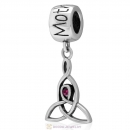 925 Sterling Silver Fashionably Tied Charm with Rose Austrian Crystals