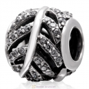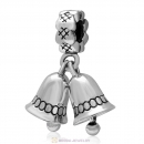 925 Sterling Silver Christmas Bell Charm Bead with Clear Zircon Stones
