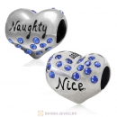 925 Sterling Silver Nice or Naughty Heart Bead with Sapphire Crystal