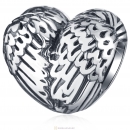 Antique 925 Sterling Silver Angelic Feathers Heart Charm Bead