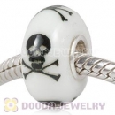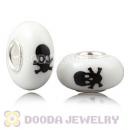 Painted Skull Crossbones Murano Glass Beads 925 Sterling Silver European Compatible