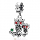 925 Sterling Silver I Love Us Owl Dangle Charm Bead with Lt Siam Crystal