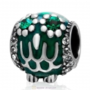 Antique 925 Sterling Silver Owl Charm Bead with Green Enamel and Crystal
