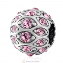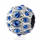 Sterling Silver Wise Owl Charm Beads with Light Siam Austrian Crystal