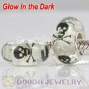 Painted Macabre Skull Crossbones Murano Glass fluorescen Beads 925 Silver European Compatible