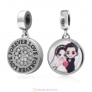 Bride and Groom 925 Sterling Silver Dangle Love Forever Personalized Photo Charm Pendant