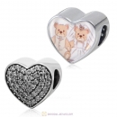 Wedding Lover Bear 925 Sterling Silver Dangle Heart Personalized Photo Charm Bead