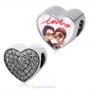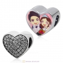 Lover Kiss 925 Sterling Silver Dangle Love Heart Personalized Photo Charm Bead