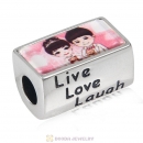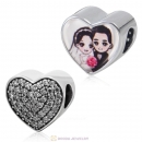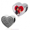 Love Couple 925 Sterling Silver Dangle Heart Personalized Photo Charm Bead