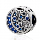 Moon and Stars Charm Bead with Blue CZ