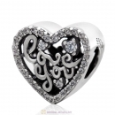 Love You Heart Charm Beads Clear CZ
