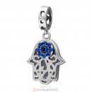 Hamsa Hand Dangle Charms with Blue CZ