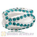 925 Sterling Silver Glistening Meander Charm Bead With Blue Zircon Austrian Crystal Wholesale