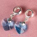 European Sterling Silver Dangle Aquamarine Heart Austrian Crystal Charm