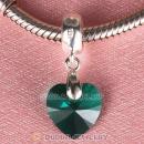 European Sterling Silver Dangle Emerald Heart Austrian Crystal Charm