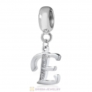 925 Sterling Silver Dangle Letter E Beads with CZ Stone