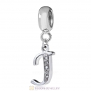 925 Sterling Silver Dangle Letter J Beads with CZ Stone