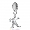 925 Sterling Silver Dangle Letter K Beads with CZ Stone