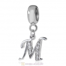925 Sterling Silver Dangle Letter M Beads with CZ Stone