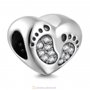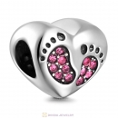 925 Sterling Silver Foot Charm Bead With Pink Austrian Crystal