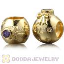 Gold Plated Sterling Silver Christmas Ball Beads With Purple Stone