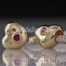 Gold Plated Sterling Silver Heart Beads with Red Stone