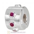 925 Sterling Silver European Fire Clip Beads With Purple CZ Stones