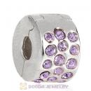 Sterling Silver Glimmer Clip Beads with Violet Austrian Crystal European Style