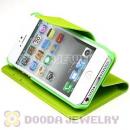 Green Lichee Pattern Credit ID Card Flip Leather Wallet Case For iPhone5