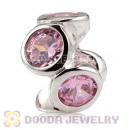 925 Sterling Silver Beads with Pink Stone fit European Lovecharmlinks Bracelet