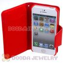 Red Lichee Pattern Credit ID Card Flip Leather Wallet Case For iPhone5